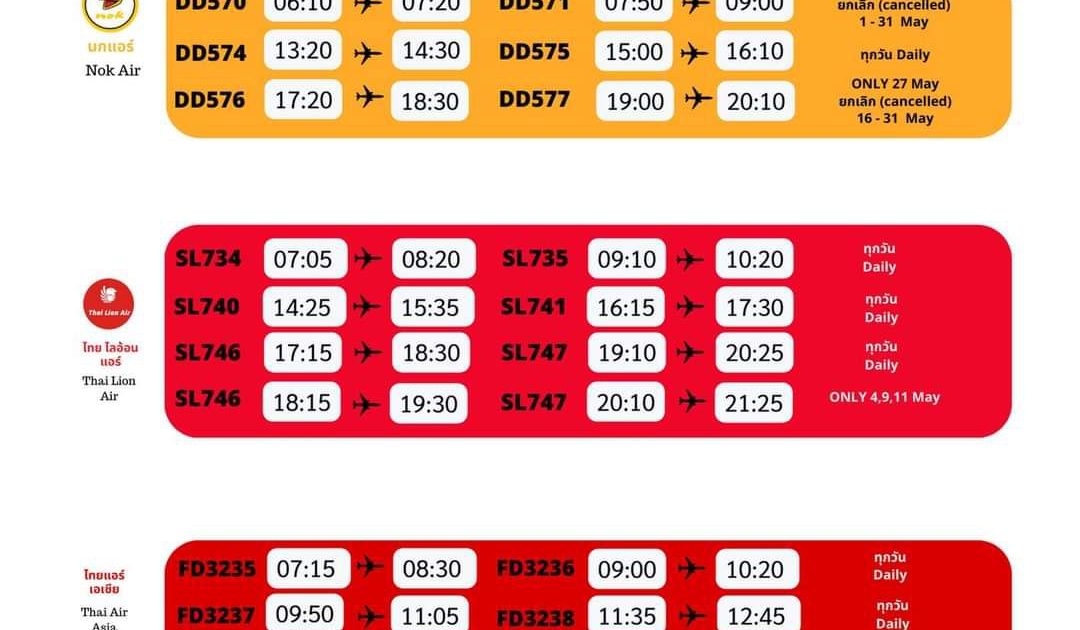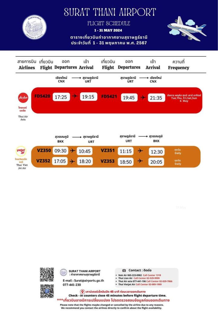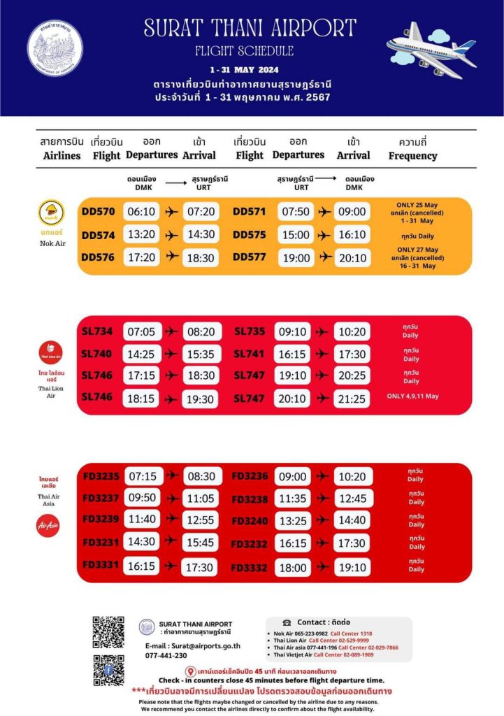 ตารางเที่ยวบินท่าอากาศยานสุราษฎร์ธานี