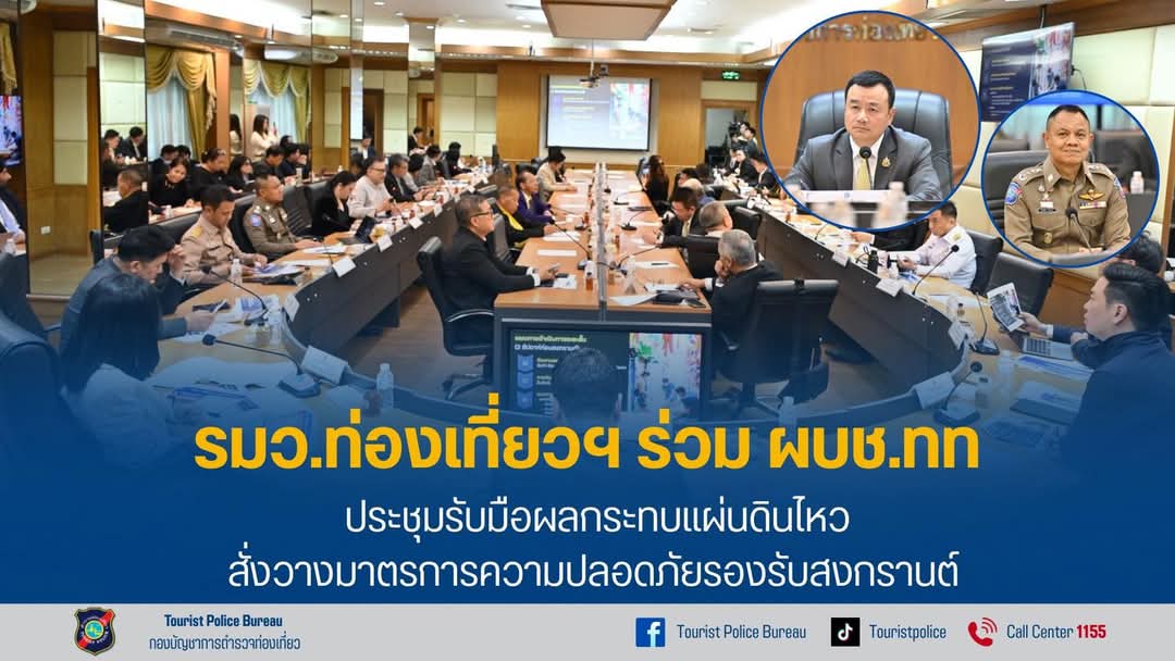🔸สรุปการประชุมติดตามสถานการณ์แผ่นดินไหว🔸 กองบัญชาการตำรวจท่องเที่ยววันที่ 28 มีนาคม 2568 เวลา 16.00